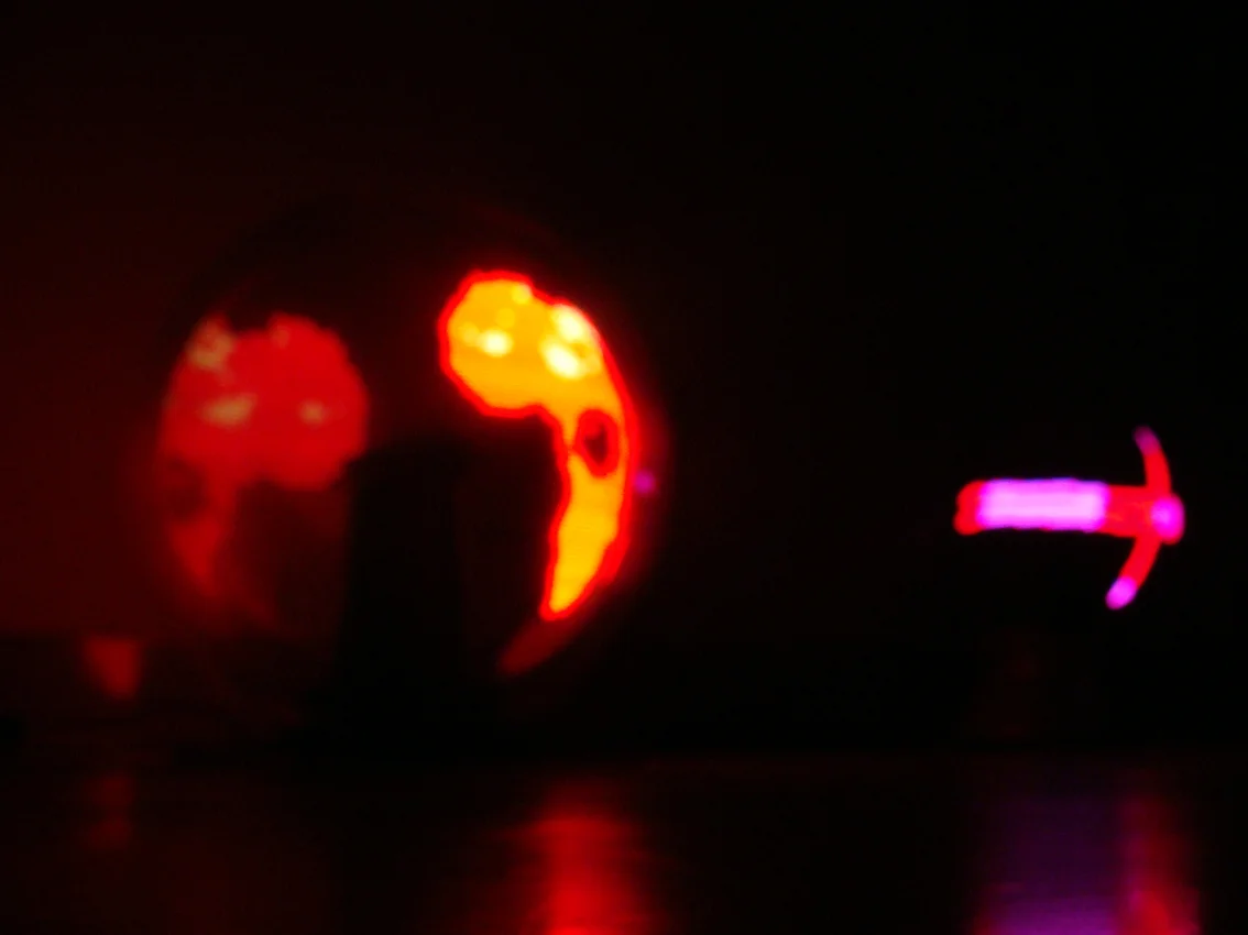 Floating land is a sculpture that draws with the light in high velocity using a mechanical apparatus. The animations are suspended and floating in a circular shape.