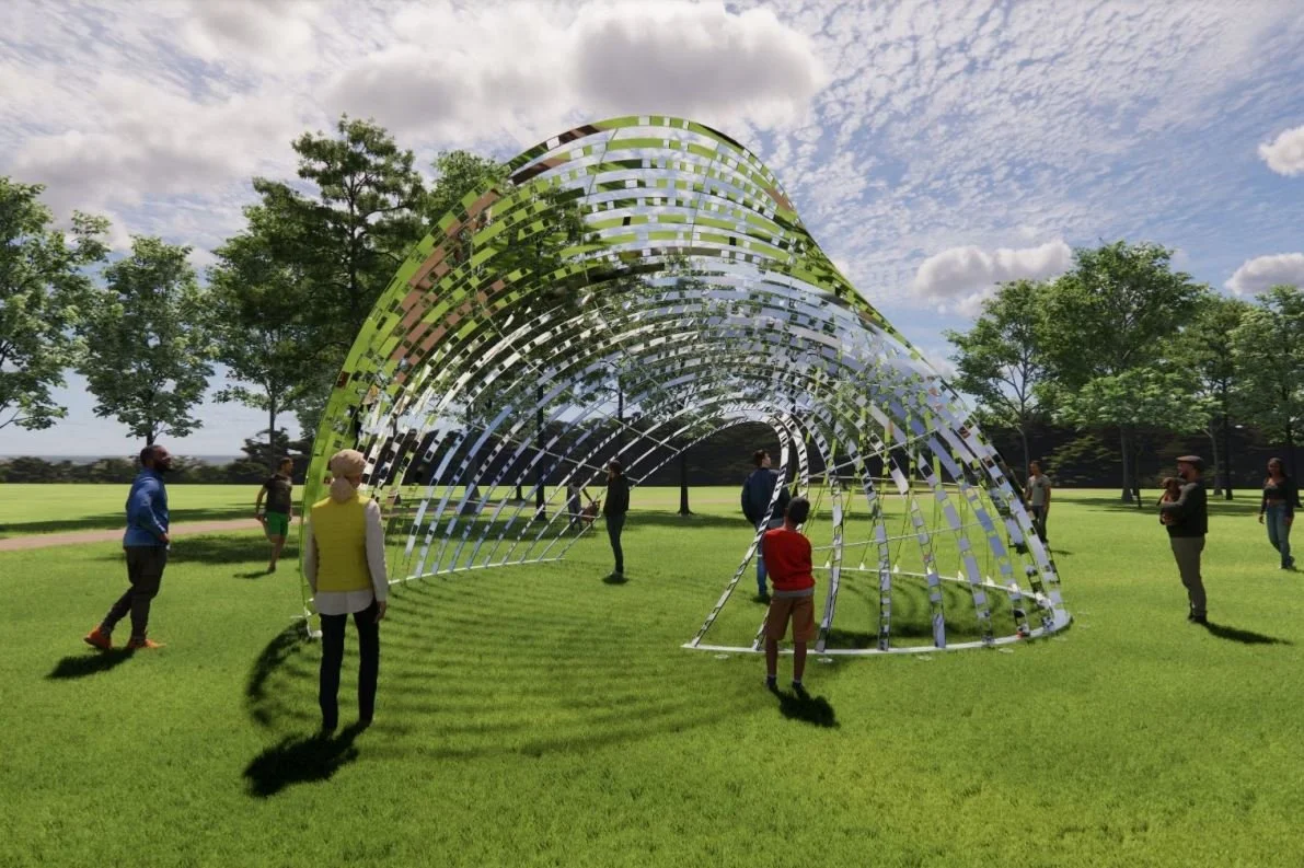 Central to the sculpture's design is a reflective vortex shell pavilion, where visitors are invited to immerse themselves in a interplay of light and space. Whether contemplating the beauty of nature or engaging in lively conversations with family and friends, the pavilion offers a sanctuary for moments of introspection and joy.